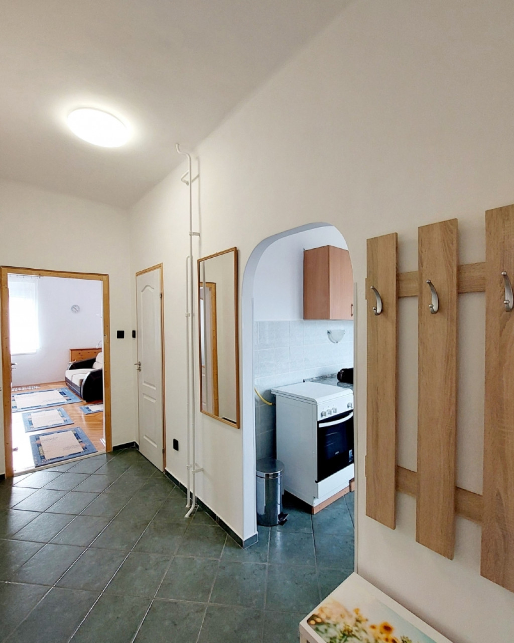 Elosztása praktikus: előtér, külön nyíló nappali, szoba, konyha, fürdőszoba, külön WC, valamint kamra. Az ingatlan teljes körűen felújított, esztétikailag és műszakilag is kiváló állapotú.