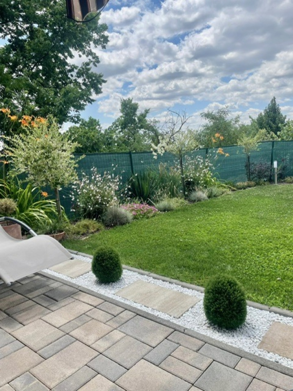 A kert 60 m2, ahonnan gyönyörű panoráma nyílik a Mecsekre.