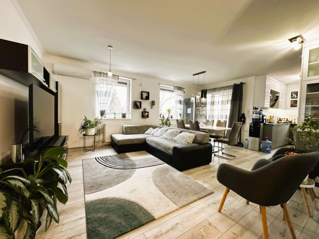Pécs egyik legnépszerűbb városrészén, a Rigóderrel szemben, zárt lakóparkban kínálok eladásra egy társasház földszintjén található 70m2-es KERTKAPCSOLATOS lakást.