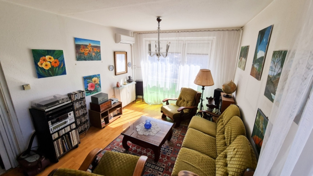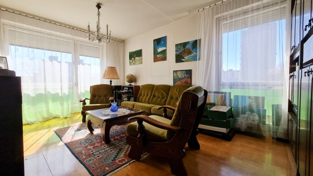 Az eredeti erkélyt beépítették, így a nappalin kívül három külön szoba áll rendelkezésre,