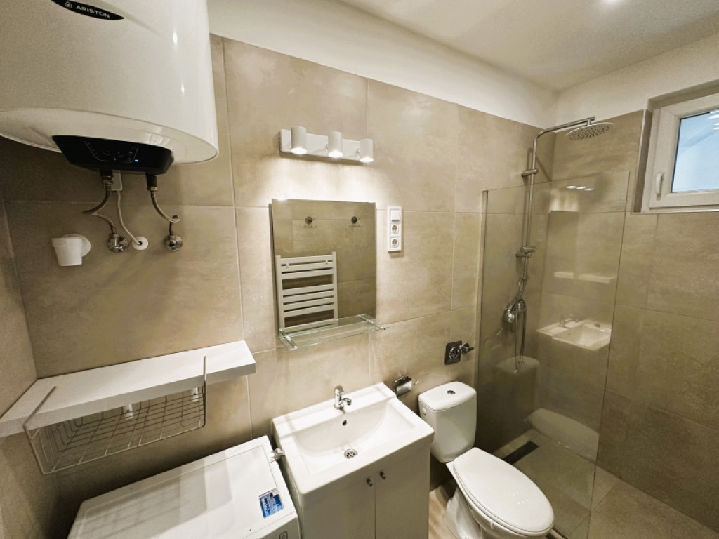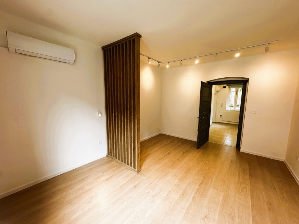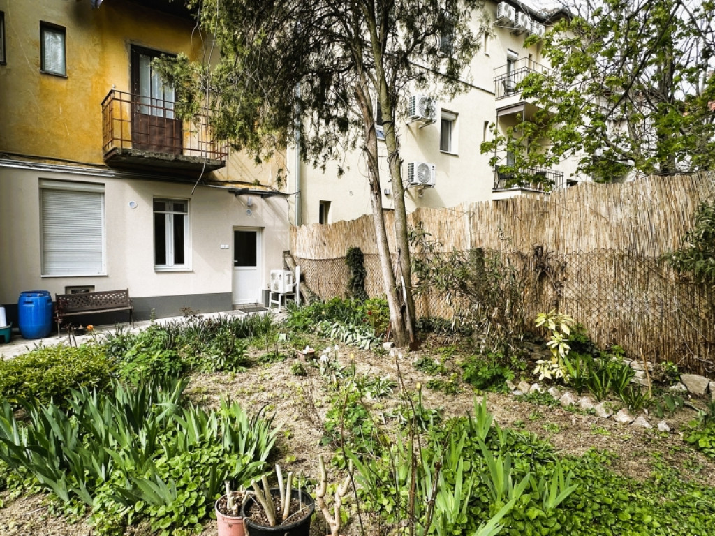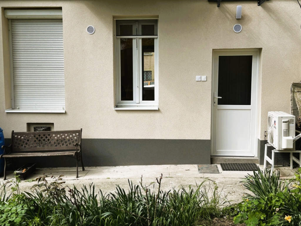 Az ingatlan praktikus elrendezésű: előtér, konyha, fürdő-WC, valamint egy tágas szoba tartozik hozzá. A lakás külön hangulatát a közvetlen kertkapcsolat, a terasz és a közös kert használati lehetősége adja, ami ritka előny egy ekkora alapterületű városi ingatlannál.