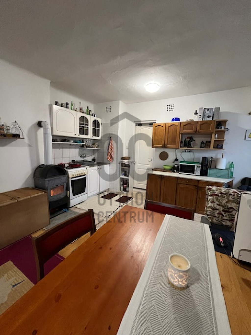 A 33m2-es, egyszobás lakás fűtéséről fatüzelésű kályha és elektromos fűtőpanelek gondoskodnak, a melegvizet villanybojler szolgáltatja. A közművek közül a villany és a víz bevezetésre került, a szennyvízhálózat a városi rendszerre csatlakozik. A lakás fölötti tetőtér beépíthető, így tovább bővíthető a lakótér. A pincében egy kb 4 m2-es önálló tároló található.