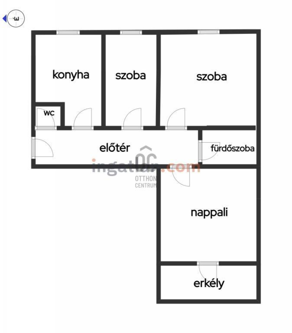Alapterület: 59 nm, kelet-nyugati tájolás