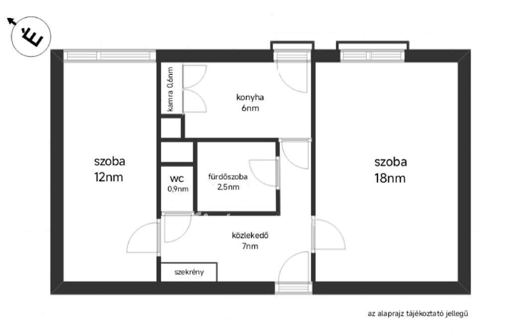 - 47 nm-es, praktikus elosztású lakás: 1 szoba + 1 félszoba