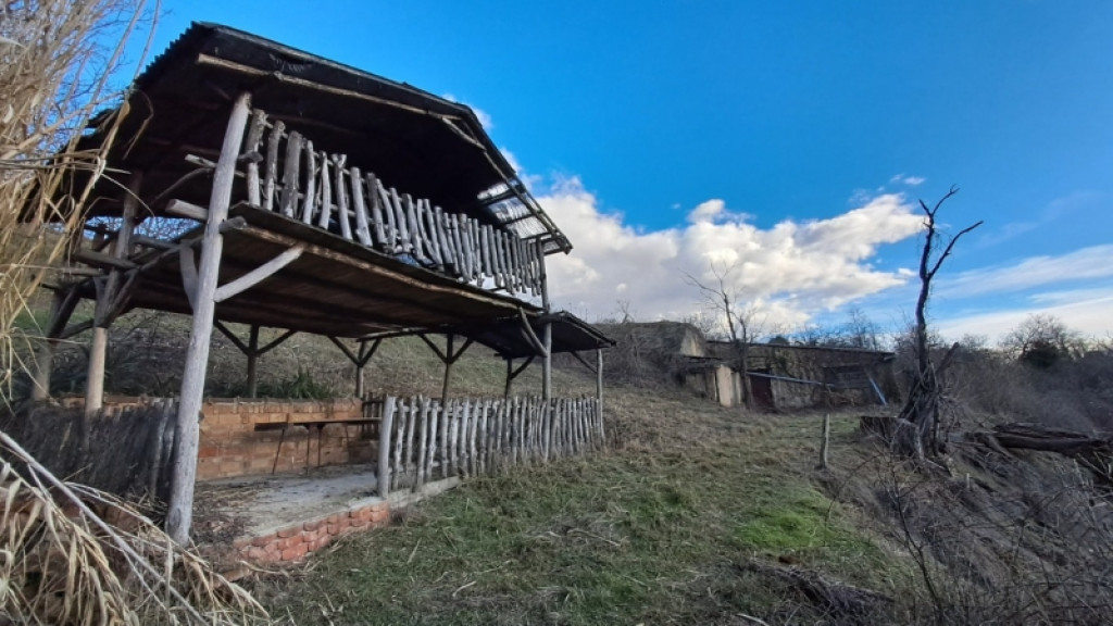 A telken található egy bontandó állapotú épület, valamint egy pince is.