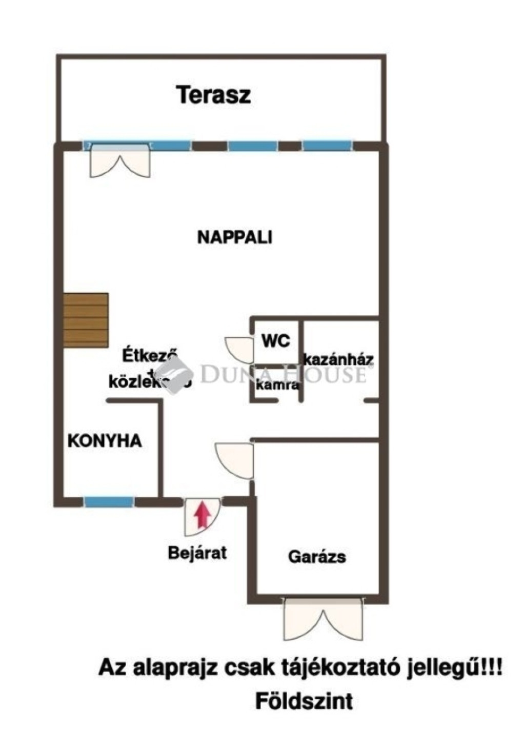 A nappaliból nyílik a kertkapcsolattal is rendelkező terasz.