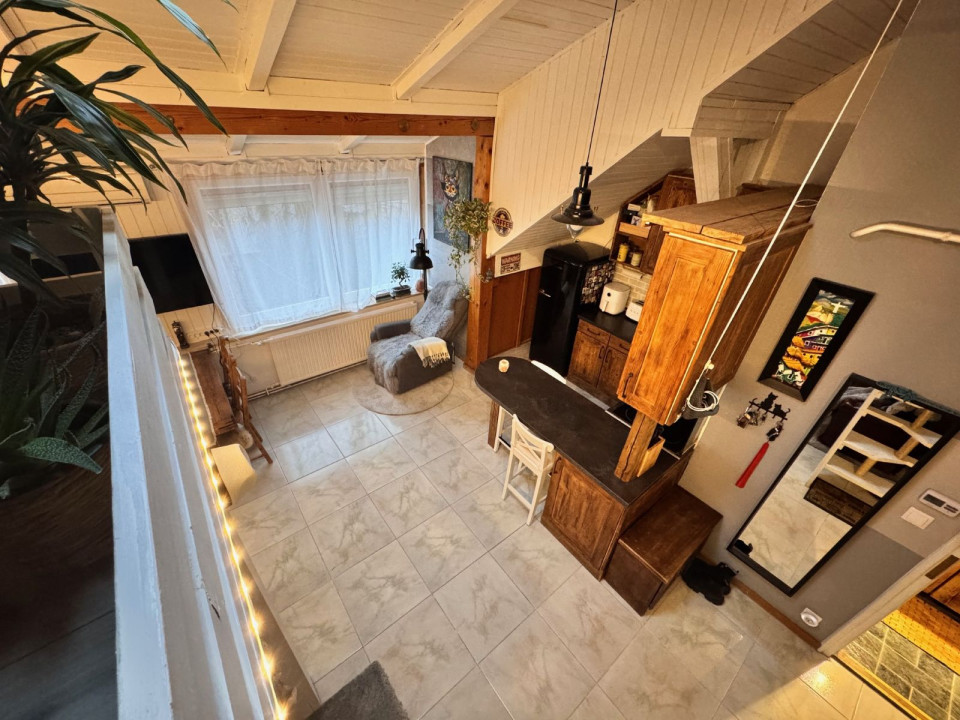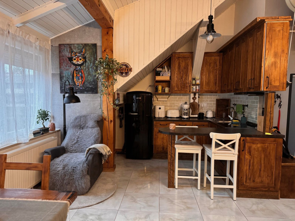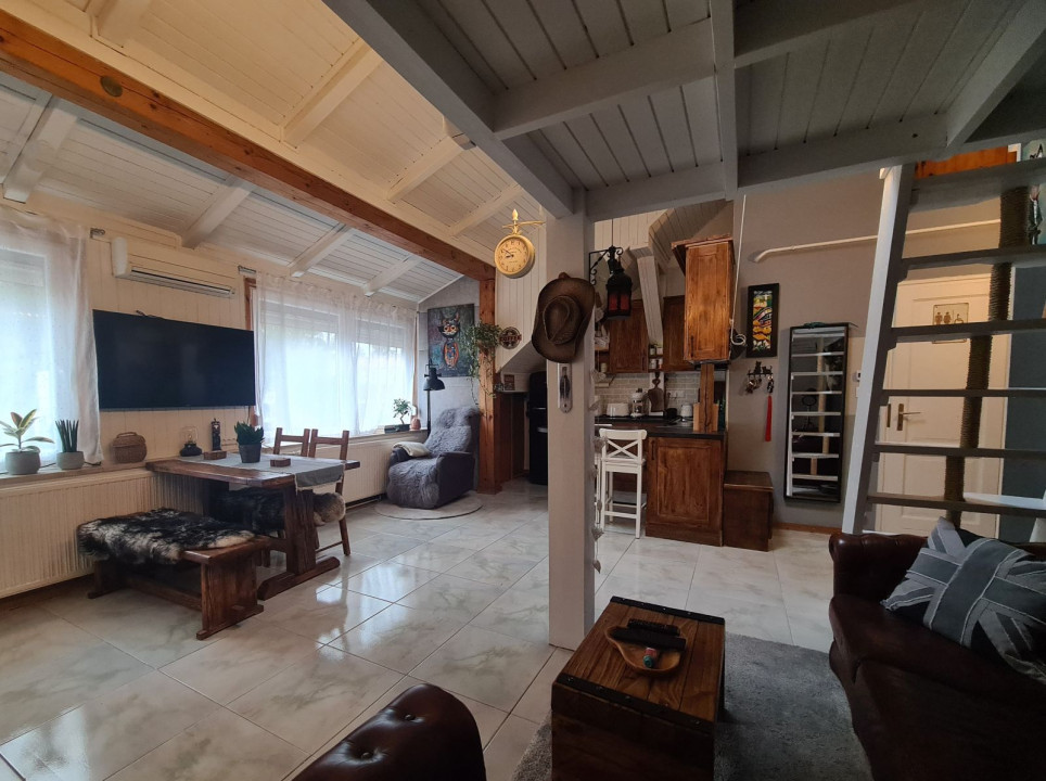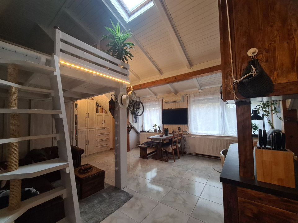 Pomázon, a Vörösmarty lakótelep egyik téglaépítésű társasházában eladó egy 38 nm lakóterű, igényesen felújított, hangulatos tetőtéri lakás. A lakóingatlanban egy légterű előtér-konyha-étkező-nappali, zuhanyzós fürdőszoba helyiségek találhatók, a hálórészt egy 7 nm-es galérián alakították ki.