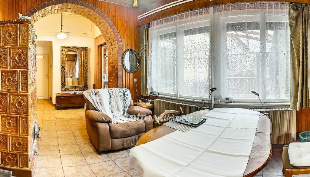 A tégla falazatú lakóépület polgári stílusban épült, masszív tetőszerkezetét cserép héjazat borítja. A házon belül 3 szoba, 1 nappali-étkező, 1 konyha, 1 kamra, 1 előtér, 1 tusolóval felszerelt fürdőszoba, külön WC került kialakításra. A konyhából a teraszra a kijárás közvetlenül biztosított. A kiváló elosztású, tágas, napfényes terekkel rendelkező, költözhető állapotú ingatlan kényelmes életteret nyújt a család minden tagjának. A 3,5 méteres belmagasságból adódóan a szobák galériázhatóak. A lakószobákat parketta, a többi helyiséget járólap burkolja. A teraszra nyíló műanyag keretes ajtó kivételével az összes nyílászáró fából készült, az összes ablak redőnnyel felszerelt. Az otthon melegéről 3 dekoratív cserépkályha, valamint radiátoros hőleadással egy cirkós gázkazán gondoskodik. A per- és tehermentes ingatlan megvásárlásával Ön egy különleges hangulatú otthon tulajdonosává válhat, amely a társasházi együttélés biztonságát ötvözi a kertes családi ház előnyeivel.
