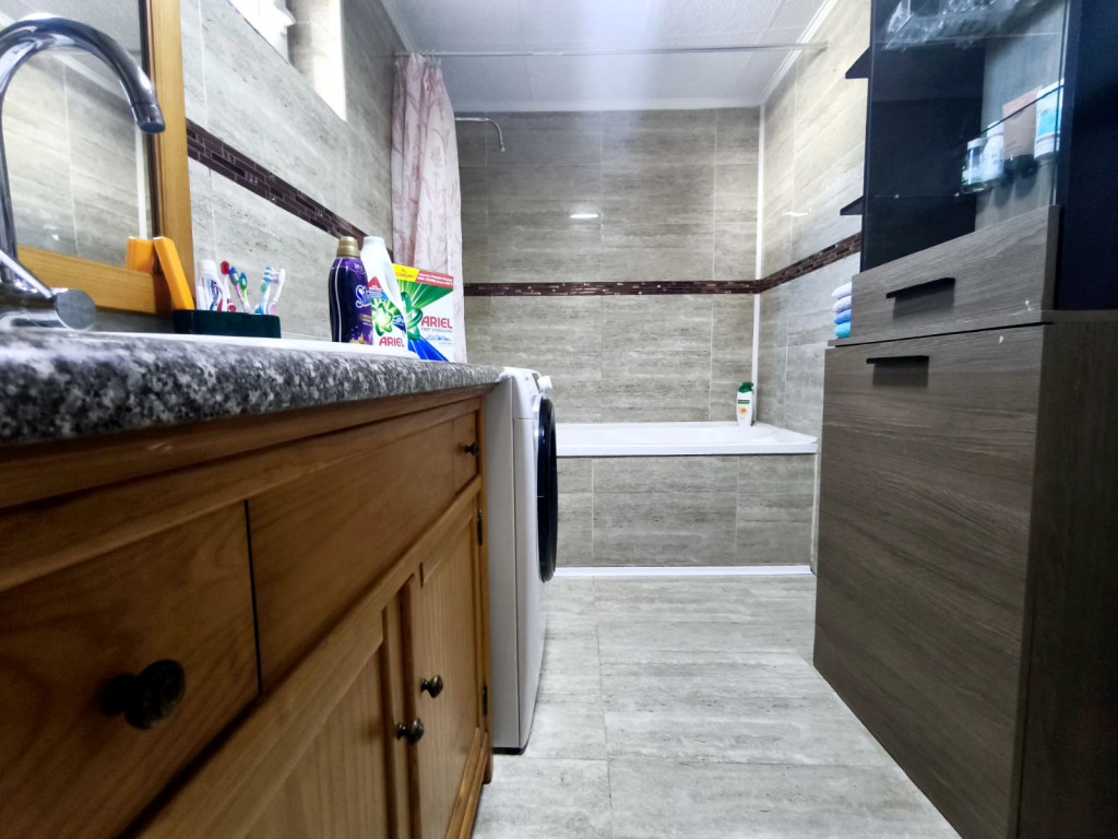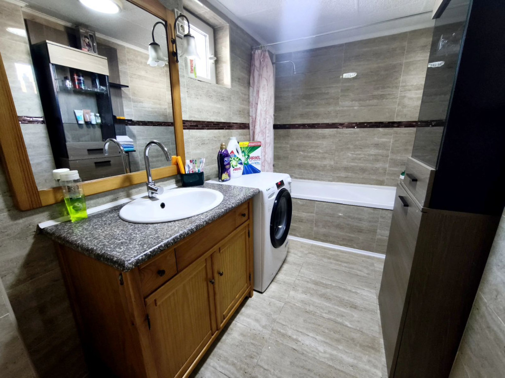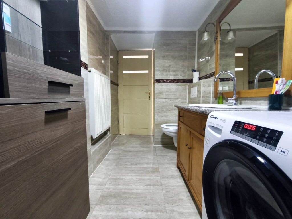 Tágas, modern fürdőszobájában új szaniterek is találhatók az új burkolatokon kívül.