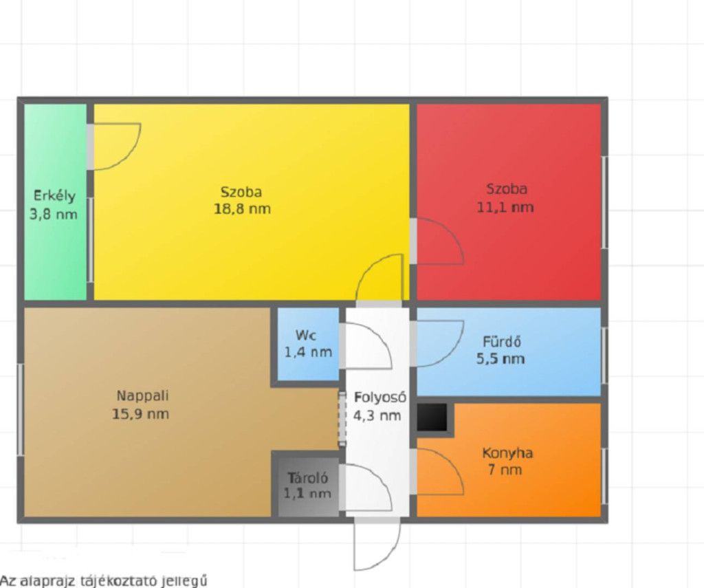 - 3 külön nyíló szoba