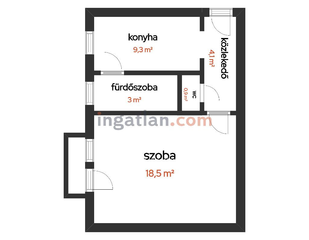 Alapterület: 1 szoba + konyha + fürdőszoba+ külön WC