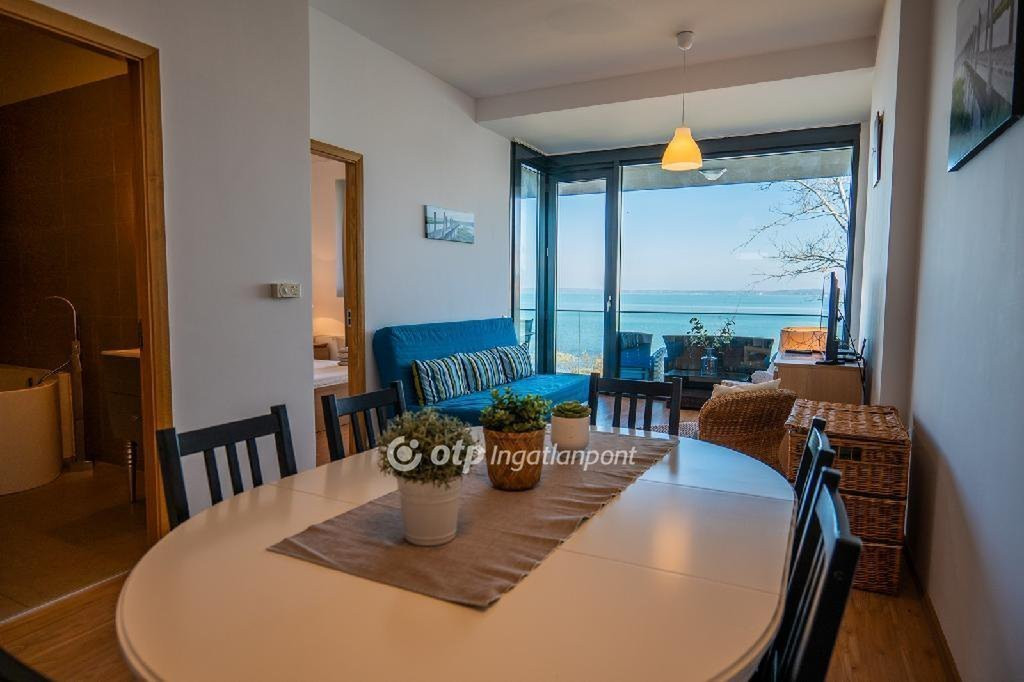 Vízparti, kertkapcsolatos lakás közvetlen balatoni panorámával Siófok Aranyparton