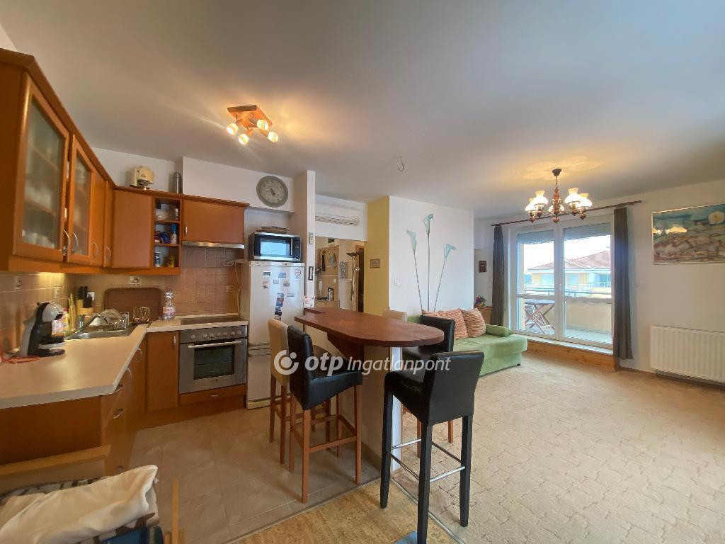 Balaton déli part, Siófok 51 m2 panorámás lakás eladó. Az ingatlan az Aranyparton, közvetlen vízparti lakóparkban helyezkedik el, 4. emeleten, 18 m2-es panorámás terasszal. A kétszobás lakás beépített konyhabútorral, beépített szekrényekkel felszerelt, teljes berendezéssel együtt kerül eladásra, melyet a vételár tartalmaz. A nyílászárókon redőny és szúnyoghálók, a teraszon napellenzők kerültek felszerelésre. A klimatizálás mindkét szobában kiépített. Az ingatlanhoz tartozik egy felszíni parkoló telken belül, melyet a vételár tartalmaz. A lakásban riasztóberendezés becsövezve, vezetékezve, a fűtés és meleg víz ellátás kombi gázkazánról biztosított, minden közmű egyedi mérővel mért. A társasház parkosított területen helyezkedik el, saját kijárattal rendelkezik a szabad strandra.
