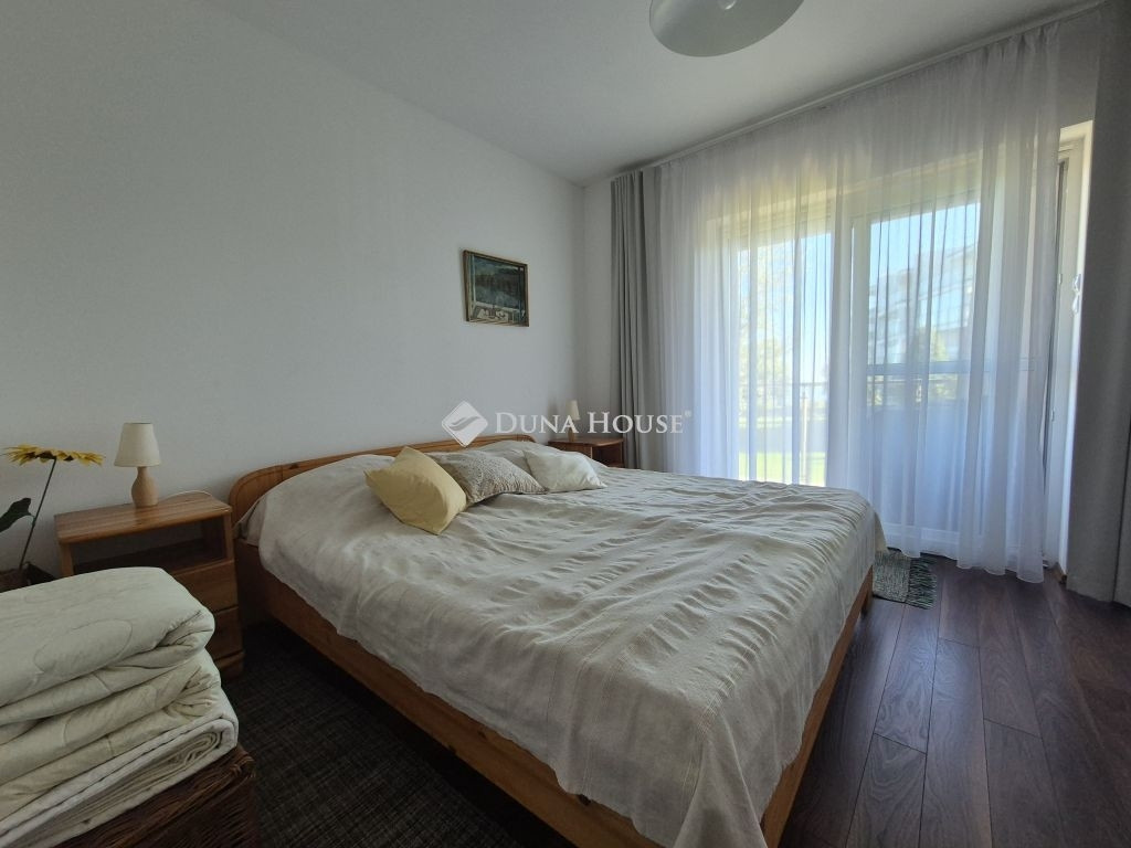 A társasház 2016-ban épült a legkorszerűbb technológiával, kivitelezéssel. Az apartman remek elosztású, világos nappali, 2 hálószoba, konyha étkezővel, fürdőszoba és egy mellékhelyiség került kialakításra. A keleti fekvésű, közel 10 m²-es erkélyről csodálhatjuk a Balatont. A szobák minőségi laminált parkettával, a többi helyiség járólappal burkoltak. A tökéletes hőmérsékletért hűtést-fűtést biztosító hőszivattyús rendszer a felelős. A műanyag nyílászárókra elektromos redőny került felszerelése.