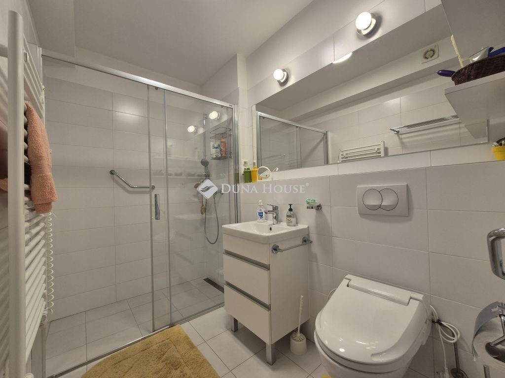 Zárt, tiszta, modern lépcsőház, amely előtt saját felszíni parkolóhely biztosított a lakók számára. A parkoló és a saját használatú tároló a vételár részét képezik. Különlegesen szép, nagy, gondozott kertjében, a társasháznak fűtött kültéri medencéje, napozóterasza is van, biztosítva a pihenést, kikapcsolódást egy igen pazar környezetben.