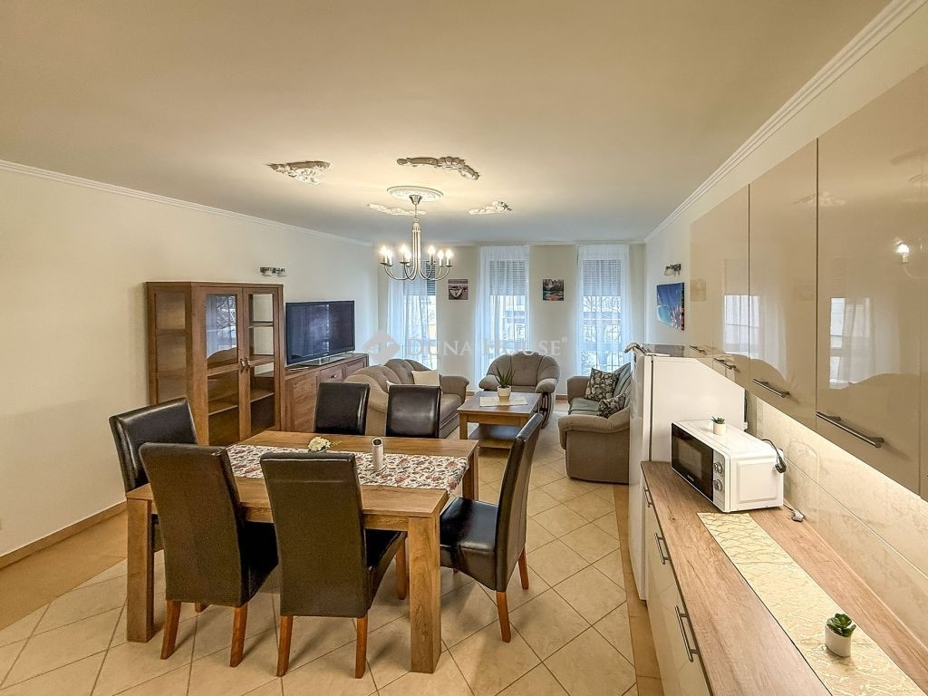 Az ingatlan különlegessége a több mint 30 m²-es, tágas nappali–konyha–étkező, ahonnan gyönyörű kilátás nyílik a város főterére, ahol egész évben pezsgő élet és számos rendezvény várja az itt lakókat.