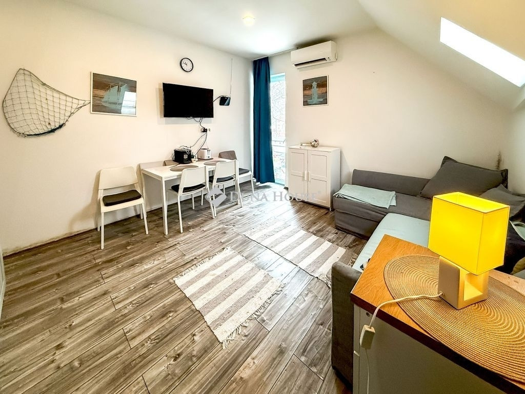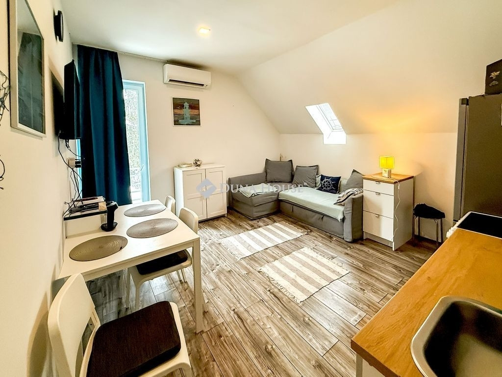 Megvételre kínálok Siófokon, kitűnő elhelyezkedéssel egy 2021-ben felújított, téglaépítésű társasház tetőterében kialakított, 34 m²-es, 2 szobás, kis méretű, mégis praktikus elrendezésű lakást.