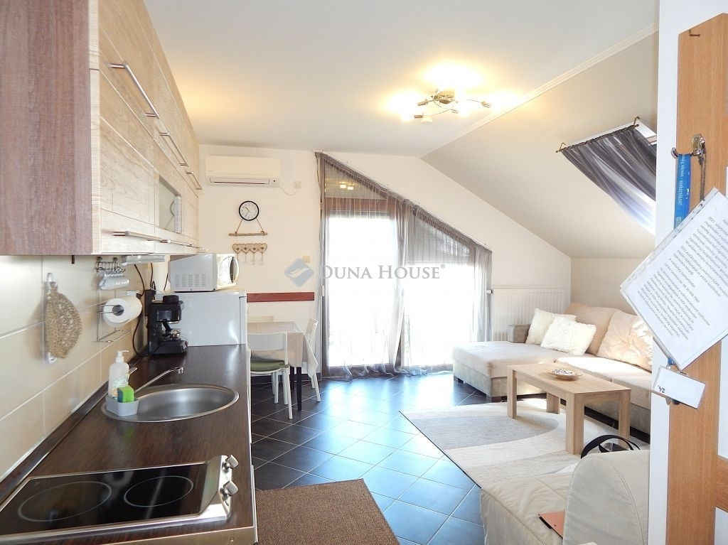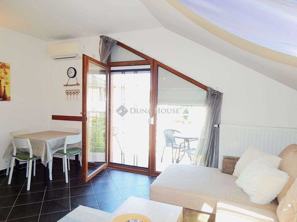Eladó Siófok Aranyparton, a nagy strandtól 1 perc séta távolságra egy erkélykapcsolatos, tégla lakás, teljes berendezéssel, gépkocsibeállóval.Siófokon a Petőfi sétány szomszédságában, a közkedvelt Köztársaság utcában kínálom megvételre ezt az újszerű állapotú, 35 m2-es tégla lakást, wellnessel rendelkező, 3 emeletes tégla épületben.A lakásban egy hálószoba, egy amerikai konyhás nappali erkélykapcsolattal és fürdő-wc található. Harmadik emeleti, északi tájolású erkélyét a nyári hőségben is kellemesen élvezhetjük, ahonnét részleges rálátás nyílik a Balatonra. A fürdőszoba zuhanyzós kialakítású, a saját villanybojler és a wc is itt kapott helyet. A lakás kellemes hőmérsékletéről hűtő-fűtő klíma gondoskodik, hűvösebb időben házközponti fűtés egyedi mérőkkel biztosítja a meleget radiátorok segítségével. A lakás újszerű állapotú, folyamatosan karbantartott, 2007-ben épült társasházban, rendezett, kulturált környezetben helyezkedik el, azonnal beköltözhető. Elhelyezkedése miatt remek lehetőség befektetési célra is, hiszen egy perc alatt a balatoni plázson vagy a nyüzsgő Petőfi sétányon lehetünk. A társasházban közös tároló áll rendelkezésre kerékpárok tárolására. Az itt pihenők kényelmét szolgálja a földszinten található, egész évben működő wellness, ahol úszómedence, szauna és jakuzzi is elérhető. Zárt udvarban, saját gépkocsibeálló tartozik a lakáshoz, amely benne van a lakás árában. A tulajdoni lapon lakásként szereplő ingatlan elhelyezkedésének köszönhetően egész évben használható, kiadható.A társasház alapító okirattal rendelkezik, a lakás tehermentes, rendezett tulajdoni viszonyokkal rendelkezik. Teljes berendezéssel és bútorokkal kerül birtokbaadásra, rövid határidővel.Személyes megtekintéshez előzetes időpont egyeztetés szükséges!