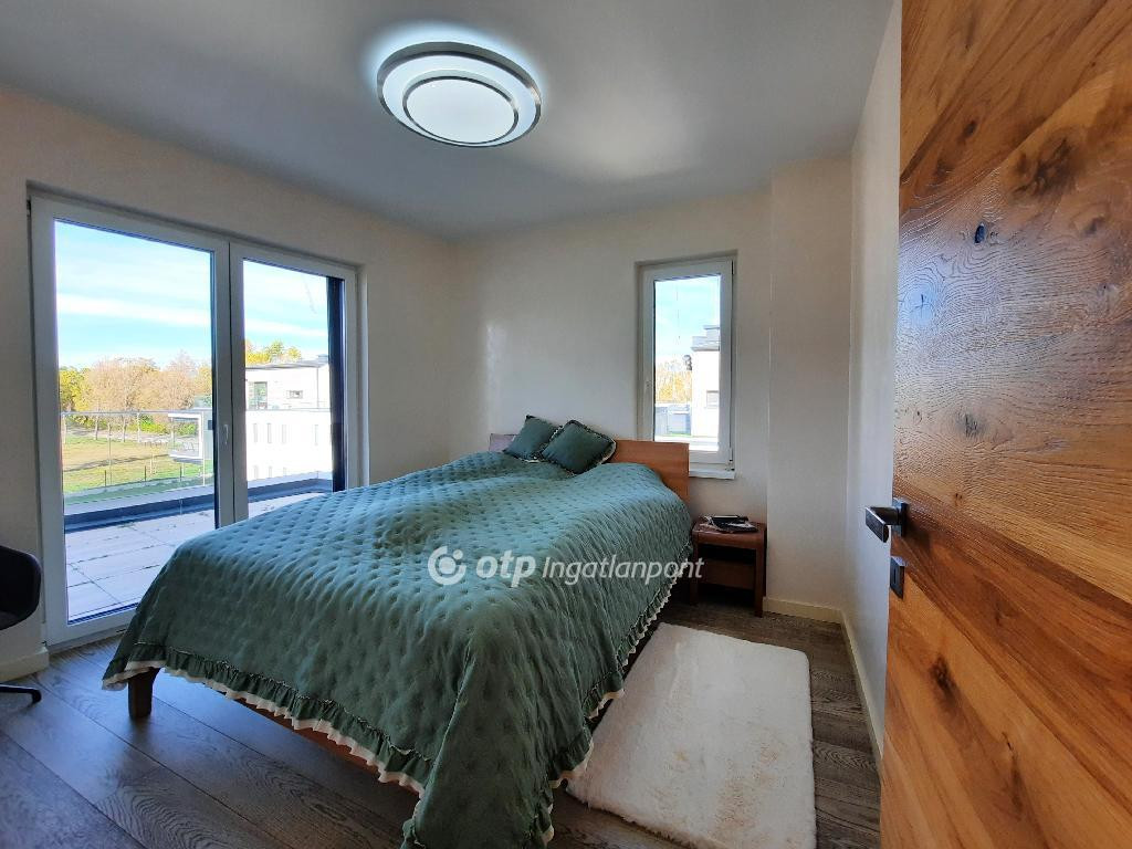 Balaton déli part, Siófok, 91 m2 panorámás penthouse lakás 68 m2 tetőterasszal eladó. Az igényes kialakítású ingatlan Széplak városrészben helyezkedik el egy vízparti, 6 épületből álló lakóparkban. A liftes, földszint + 2 emeletes épületben 5 lakás került kialakításra, a legfelső szintet teljes egészében ez az egyetlen lakás foglalja el. A lakásban egyedi belsőépítészeti megoldások készültek, kiemelten: magas minőségű beépített konyhabútorral, gépekkel, egyedi színvonalas felületképzésekkel és belső ajtókkal kivitelezve. A fűtés - hűtés, meleg víz előállítás a lakáshoz egyedi hőszivattyúról megoldott, mennyezet hűtéssel-fűtéssel, kiegészítő klímaegységgel. A 2022-ben átadott lakópark felszín alatti részén közös kerékpártároló, teremgarázs, és külön tárolóhelyiségek épültek. A szépen gondozott, parkosított kertben játszótér és medence szolgálja a lakók kikapcsolódását. A társasháznak 3 irányban van közút csatlakozása, ebből az egyik közvetlenül határos a szabad stranddal. A lakáshoz pluszban vásárolható 2 db teremgarázs-hely és 2 db 3 m2-es tároló. Részletekért, megtekintésért keressen telefonon!