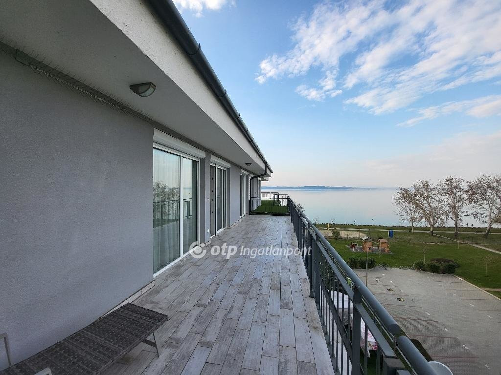Balaton Déli part, Siófok Balatonszéplak 76 m2 örökpanorámás lakás eladó. A liftes társasházi lakás az Ezüstparton, közvetlenül a szabadstrand mellett, egy lakóparkban helyezkedik el csendes, nyugodt környezetben. A negyedik emeleti, az ingatlannyilvántartás szerint 62 m2-es lakótérhez tartozik egy 32 m2-es terasz, egy 3 m2-es saját tároló és egy parkolóőrrel ellátott gépkocsi beálló. A nyílászárók szúnyoghálóval és elektromos redőnyökkel felszereltek. A távvezérléssel irányítható fűtést hőszivattyú biztosítja. A lakóparkba autóval elektromos kapun keresztül, gyalogosan számkódos/kulcsos kiskapun keresztül juthatunk be, a szabadstrandot számkódos kapu választja el az ingatlantól. A közös költség tartalmazza a fűtést, takarítást az udvaron, a gondnokot, kertészt és a szemétdíjat is. Növeli az ingatlan értékét, hogy egy éve lett festve, tapétázva, és azóta nem használta senki. A lakás alkalmas állandó lakhatásra, nyaralásra, de kiváló lehetőség befektetési céllal kiadásra is. A panoráma örök, a hatalmas teraszról az év minden napján láthatjuk az ezerarcú Balatont, gyönyörködhetünk a napkeltében. Keleti tájolásának köszönhetően a legnagyobb nyári melegben is élvezhetjük a tetőterasz kényelmét, miközben a gyerekek a közeli játszótéren vagy a strandon látó- és hallótávolságon belül tölthetik a napot. Éttermek, játszótér, buszmegálló, vásárlási lehetőség a közelben, óvoda, iskola, egészségügyi intézmény könnyen elérhető távolságra. A tároló és a gépkocsi beálló 5-5 M Ft-os árát nem tartalmazza a hirdetési ár. Bővebb információért keressen telefonon! M324956