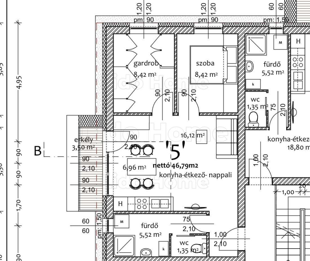 • az emeleti lakásokhoz 6 m²-es fedett terasz kapcsolódik