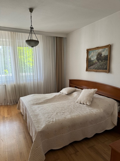 A lakáson belűl egy elegáns lépcső vezet a földszintre,ahol jelenleg 2 nagyob méretű szoba található,de az erdeti tervek alapján 3 szobát terveztek.A szobákból kijárat a teraszra és onnan közvetlen kertkapcsolat.Ezen a szinten található a fürdőszoba,háztartási helyiség.