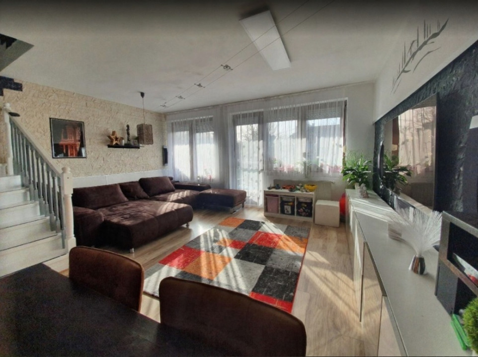 Sopronban a Besenyő utcai lakóparkban Br: 100 m2 N: 86 m2 lakóterületű I: emeleti 3,5 szobás két szintes kiváló műszaki állapotú igényes, nagy erkélyes lakás eladó. A lakáshoz az árban 2 tároló és egy gépkocsi beálló is tartozik.