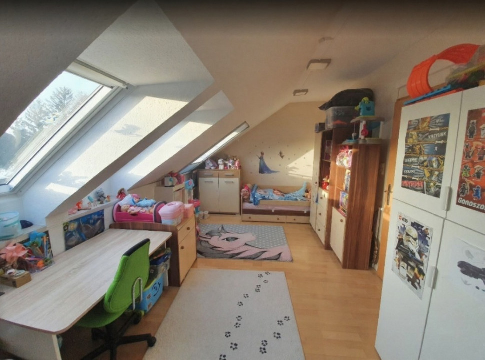 Az ingatlan alsó szintjén tágas erkélyes nappali, egy fél szoba, konyha, közlekedő.,illemhely, található, míg az emeleten két szoba, fürdőszoba került kialakításra. A lakás mindkét szintje klimatizált. Jelentős felújításon tíz éve esett át az ingatlan. Teljes burkolat csere, konyhabútor csere történt. A szanitereket szintén cserélték, majd néhány év múlva az összes tetőtéri ablakot az akkor elérhető legmodernebb árnyékolóval és rovarhálóval felszerelt VELUX tetősik ablakokra cserélték. Az ingatlan környezete szép rendezett. A lakás minőségi berendetzésekkel és tartozékokkal felfelszerelt. Jelenleg az ingatlant egymegbízható pár bérli, akik, amennyiben lehetőség van rá szívesen matadnának a lakásban. Természetesen ez csupán egy lehetőség. Az ingatlan rezsiköltsélgei kifejezetten alacsonyak . A közös költséggel együtt sem érik el a havi 45 000 Ft-ot. A közös költség 19 600 Ft/hó