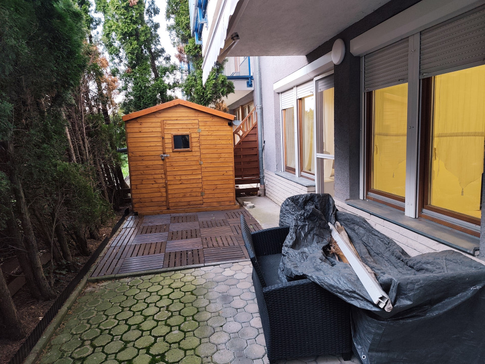 Sopronban a Lőverek közelében 57 m2 +15 m2 terasz 3 szobás öszkomfortos igényes lakás saját kertrésszel eladó. Az ingatlanhoz saját gépkocsi beálló is tartozik. A lakásba belépve egyből szembeötlik a harmónia amit az ingatlan sugároz. A földszínek, az igényes konyhabútor, a burkolatok, mind a tulajdonos kifinomult izlését dícsérik. A közlekedő egyenesen a tágas am. konyhás nappaliba vezet. Az ingatlan sajátossága a nappaliból nyíló 15 m2 tágas terasz, mely egyben a lakáshoz tartozó kizárólagos használatú kerttel biztosít összeköttetést. Tavaszi nyári estéken egy fárasztó nap végén néhány gyertya fényénél egy pohár borral ellazulni. Kell ennél üdítőbb élmény? A kerti bútorok és kiegészítők tárolására egy kis faház szolgál, mely szintén a vételár részét képezi. A két hálószoba kis folyosóról közelíthető meg, mely jól elhatárolja a közösségi teret a lakás intim zónájától. Az ablakok nagy méretűek, így a lakás is világos. Az ablakokra mindenűtt redőnyök kerültek fdelszerelésre. Az ingatlan rezsiköltségei kifejezetten alacsonyak. Mivel az ingatlan jelenleg lakatlan, nagyon gyorsan költözhető. A társasház közelében számos bevásárlási lehetőség, valamint iskola, óvoda is megtalálható. A parkolás a lakáshoz tartozó gépkocsitárolóban biztosított. A tömegközlekedés a Város felé kiváló. Az Auisztriában dolgozók számára is remek lehetőség, hiszen az autópálya felhajtó csupán néhány száz méterre található az ingatlantól. A lakás akadálymentesített így az idősebb generáció számára is kitűnő választás. Az ingatlan egyedi sajátosságai: