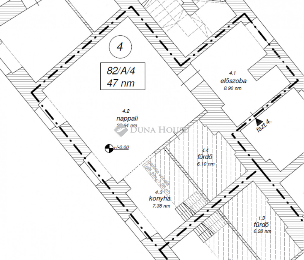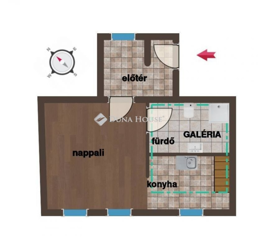 A4 lakás: A földszinti ingatlan 47 m2 alapterületű,előtér, nappali, konyha és fürdőszoba kapott helyet benne, mivel a belmagasság lehetővé teszi, egy hálónak is alkalmas galéria is kialakításra került.