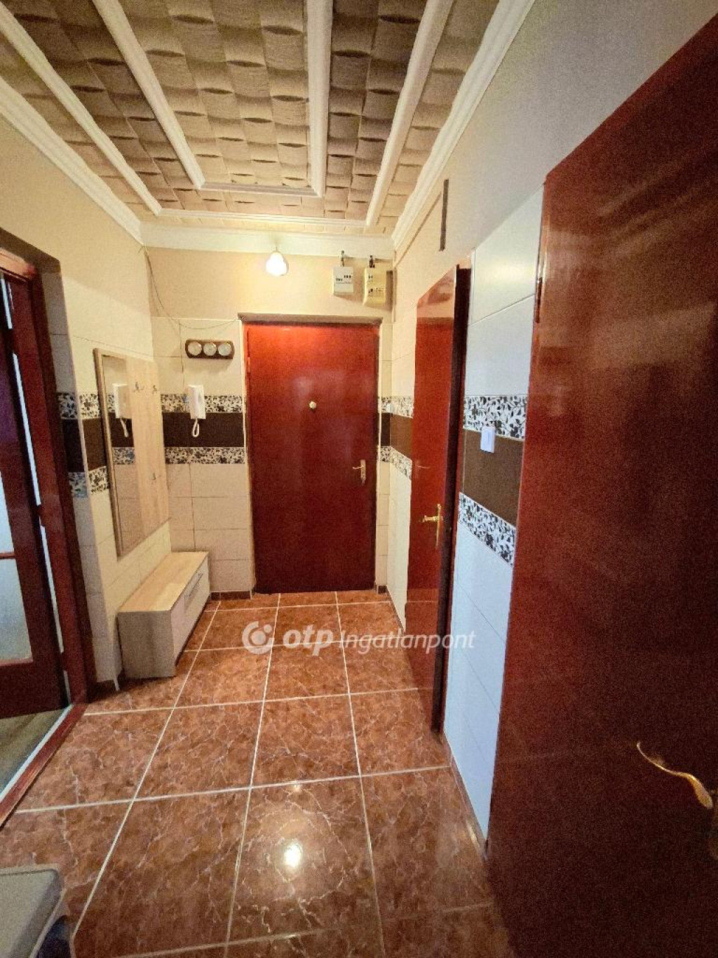 A közlekedőben tükörrel borított beépített szekrények vannak.