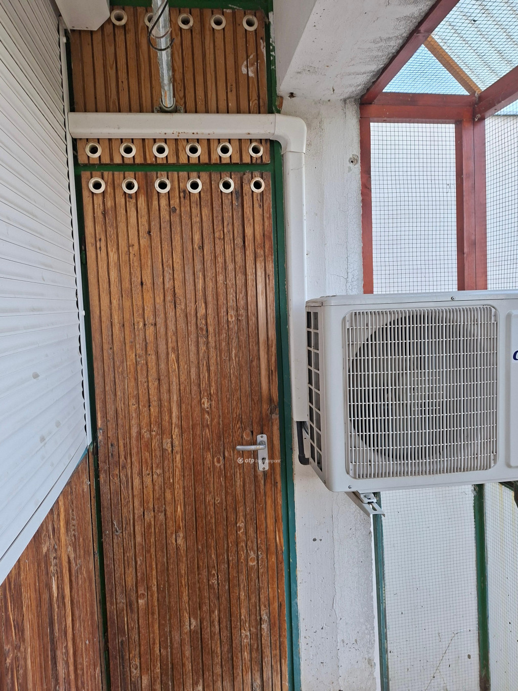 A nagyobbik szobából nyílik egy csúszásgátlós járólappal borított terasz, amelyet a tulajdonosok galambmentessé tettek, valamint esővédett.