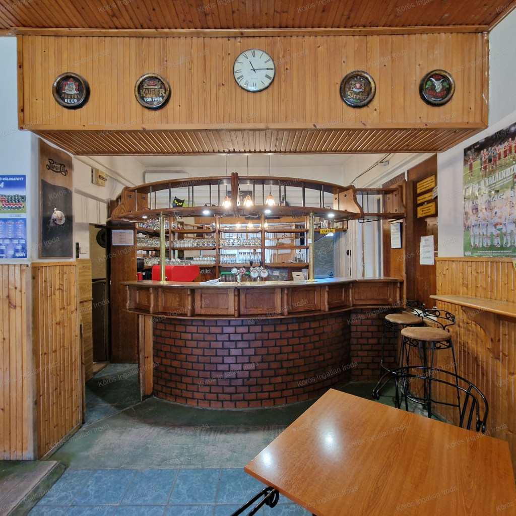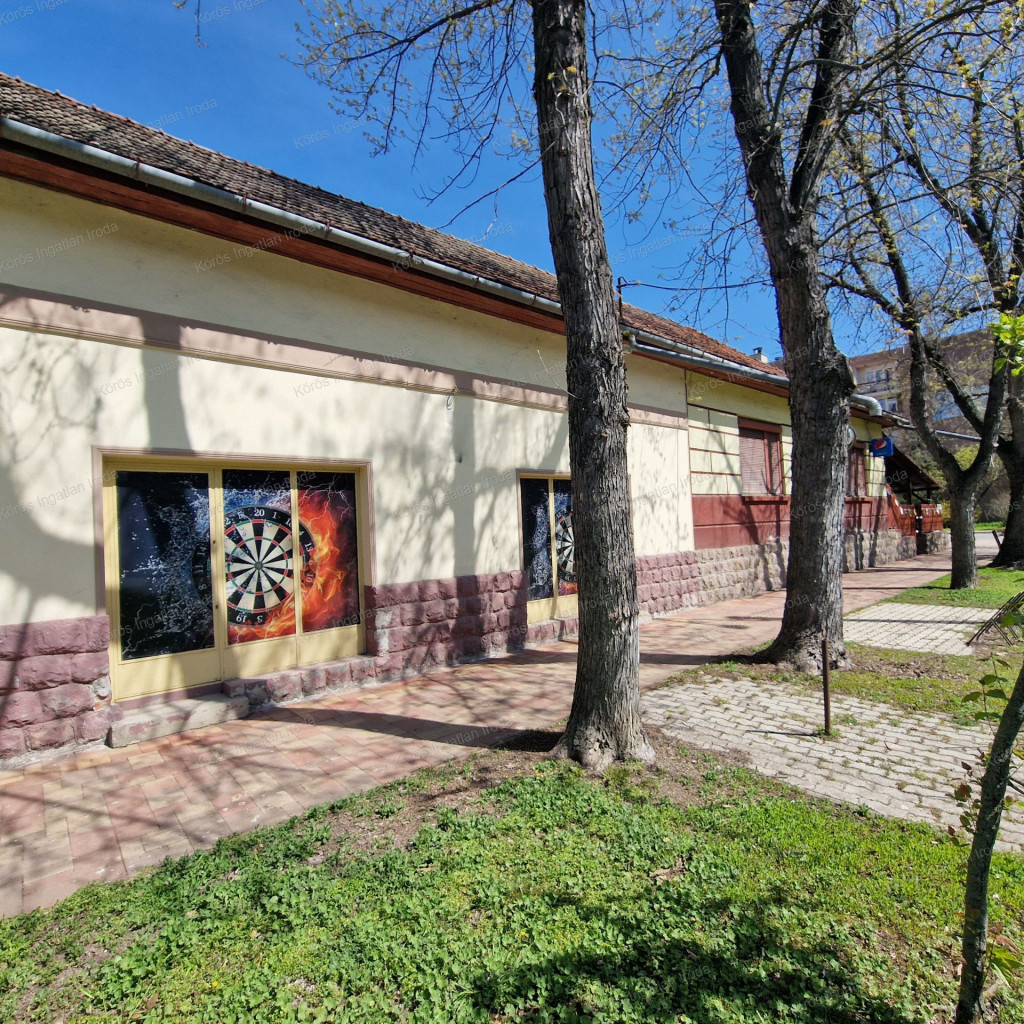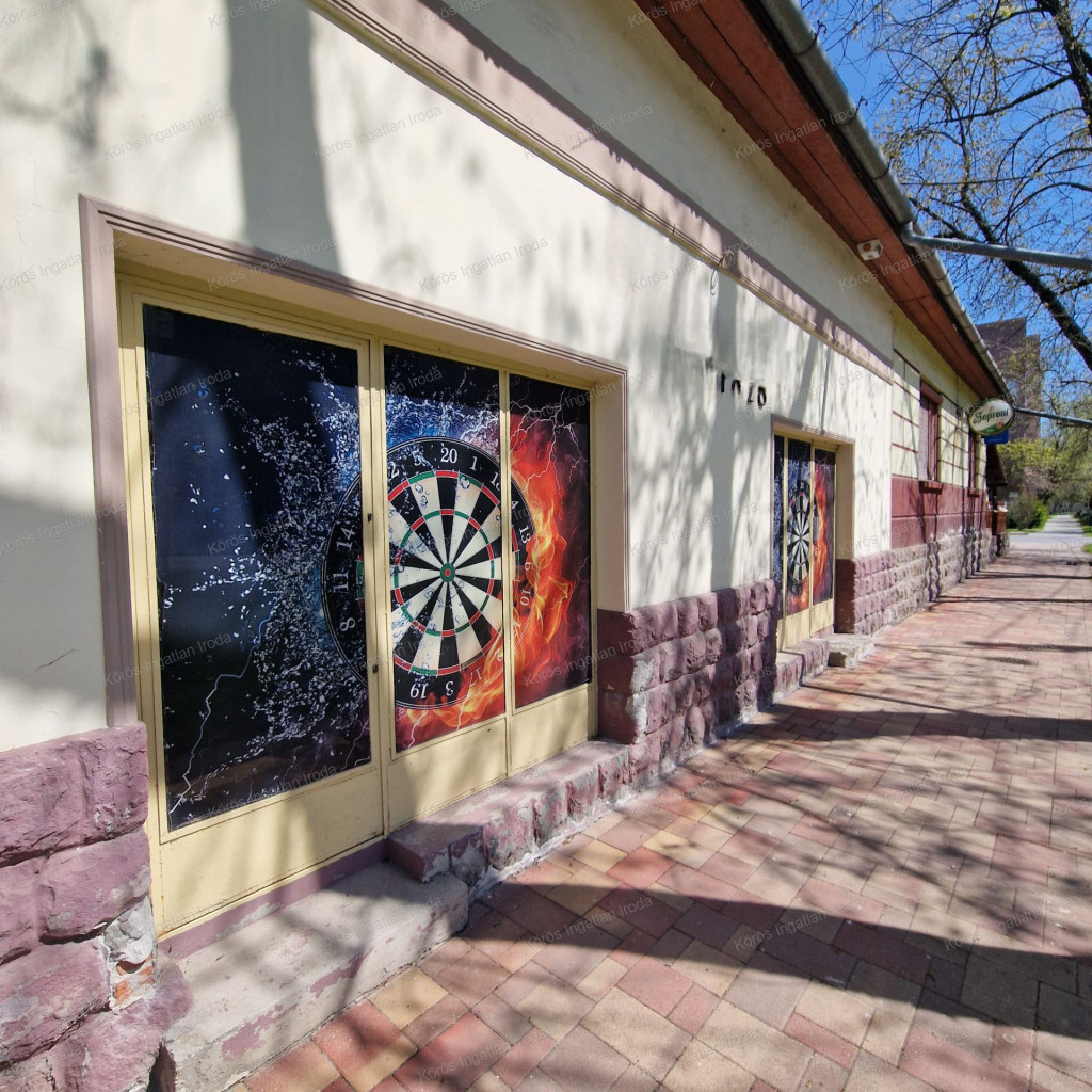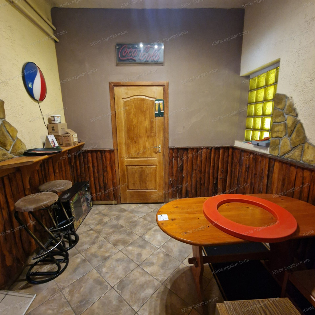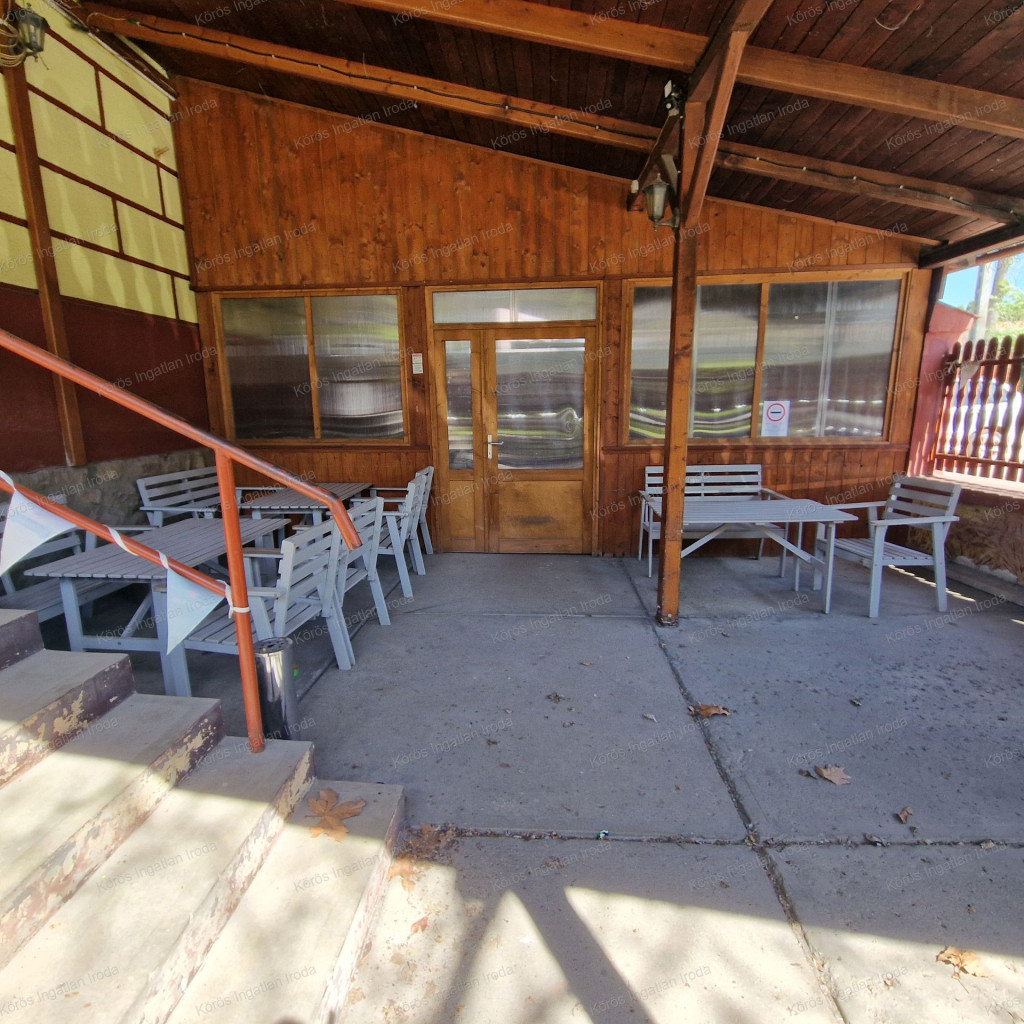Évtizedes vendéglátó múltra visszatekintő ingatlan statikailag, esztétikailag kimondottan jó állapotú, összkomfortos, összközműves. Bejáratánál 72nm-es fedett terasz fogad, melynek fele téliesített. A vendégtér mellett biliárd szoba, és 2x3 pályás darts versenyekre kialakított helyiség található. A kiszolgáló pult mögött raktár, kazánház foglal helyet, és természetesen a férfi-női-személyzeti vizesblokk és az öltöző is rendelkezésre áll. Ennek az utcafronti elhelyezkedésű épületrésznek a hasznos négyzetmétere 150nm + a 72nm-es terasz. Kombi gázkazán, vegyes tüzelésű kazán, és klímák biztosítják a fűtést, a hűtést, és a melegvizet. Aljzata mindenhol hidegburkolattal ellátott, falazata festett, csempés, illetve lambériás.
