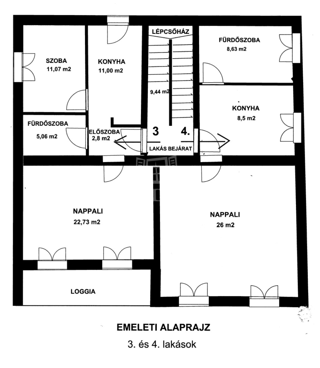 53 m2 -es + 8 m2 loggiás, emeleti lakás az alaprajzon " 3 "jelű .