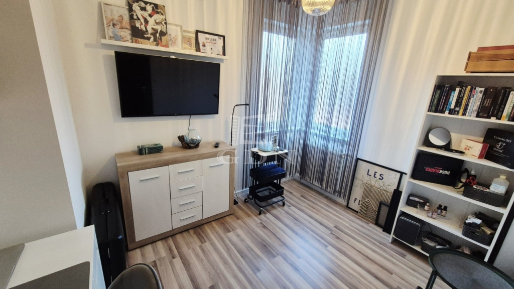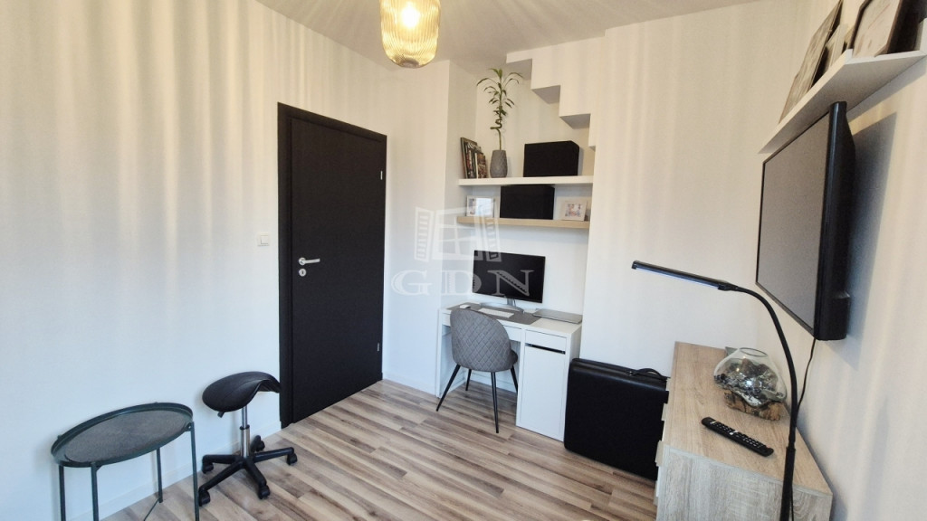 A gyerekszoba és a gardrób könnyedén egybe nyitható, így egy teljes értékű szoba is kialakítható a jelenlegi két félszoba helyett.