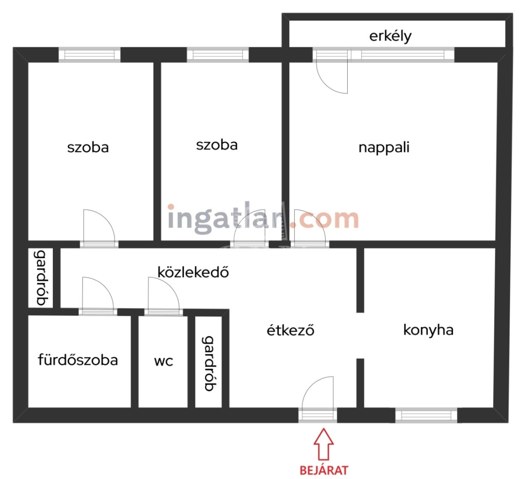 - zárható folyosóról nyílik az ingatlan, a folyosón mindössze két lakás található