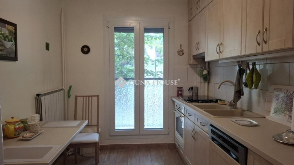 A lakás rendezett, szép állapotú, tölgyfa parkettás helyiségekkel, 2020-ban teljesen felújított fürdőszobával. A konyha mellett kamra, gardrób és külön WC található. Az északi oldali nappali és konyha a csendes utcára néz, a déli fekvésű szobák pedig a zöld, belső udvarra nyílnak.