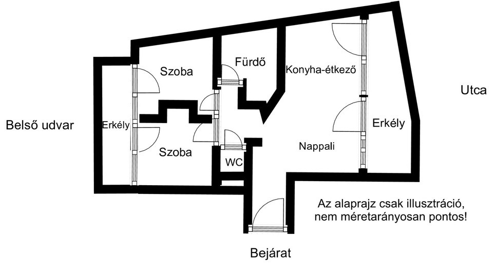 A lakás tulajdoni lap szerint 77,69 m² (2,5 szobás), amelyből 67,47 m² a lakótér, míg a két erkély összesen 20,44 m², ezek területének fele került beszámításra a hasznos alapterületbe. Az épületben lift is rendelkezésre áll, így a mindennapi közlekedés kényelmesen megoldott.
