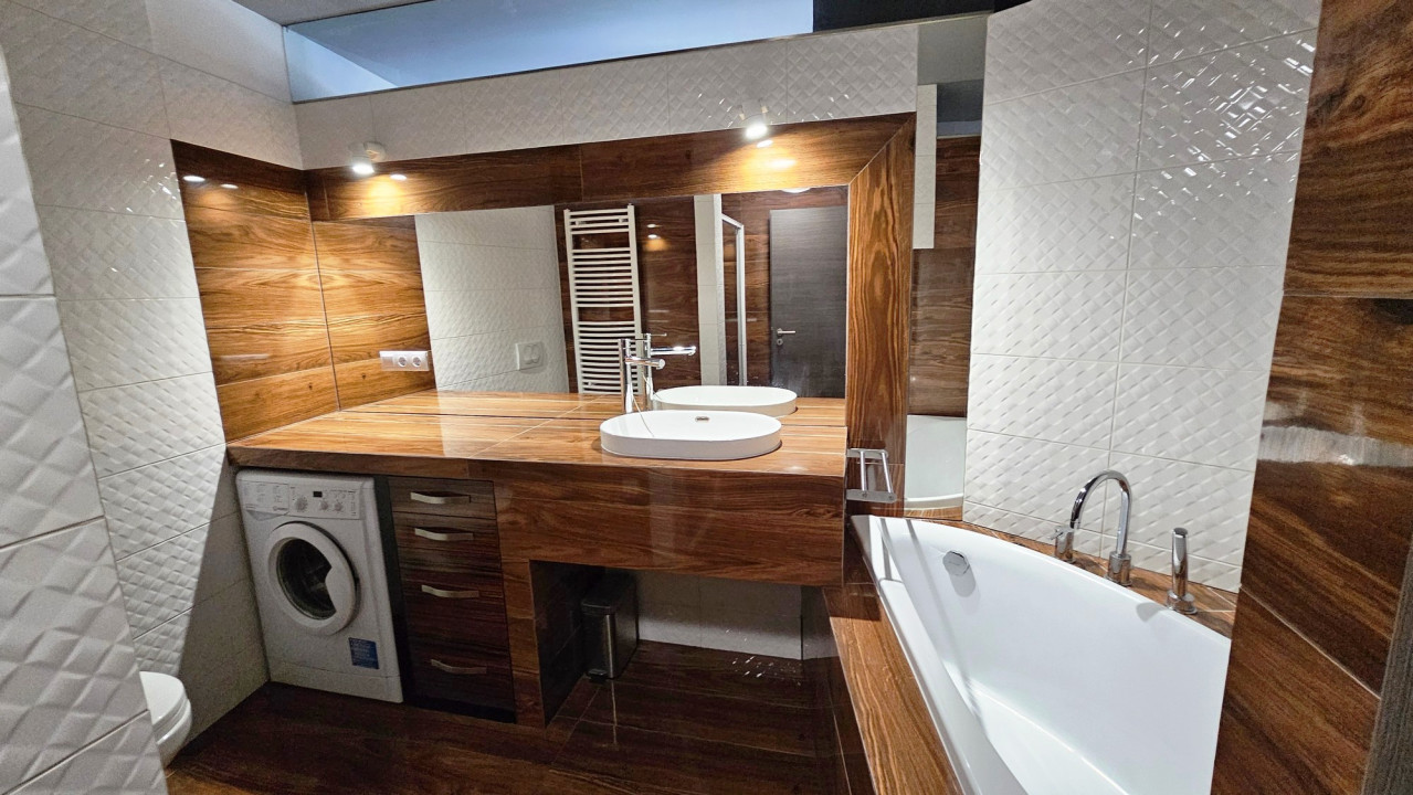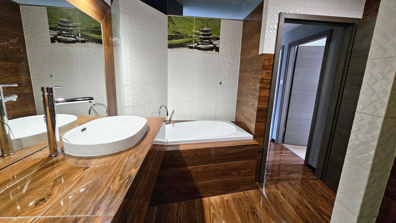 A nappaliból érhetők el a további helyiségek: egy különálló, kézmosóval rendelkező toalett, valamint a két hálószoba, amelyek az udvari részre néznek, külön nyílóak, és mindkettőből közvetlen kijárat nyílik a másik erkélyre. A fürdőszoba kielégíti a fürdőkádat kedvelők és a tusolót preferálók igényeit is. Ezen kívül ide is kialakítottak egy toalettet.