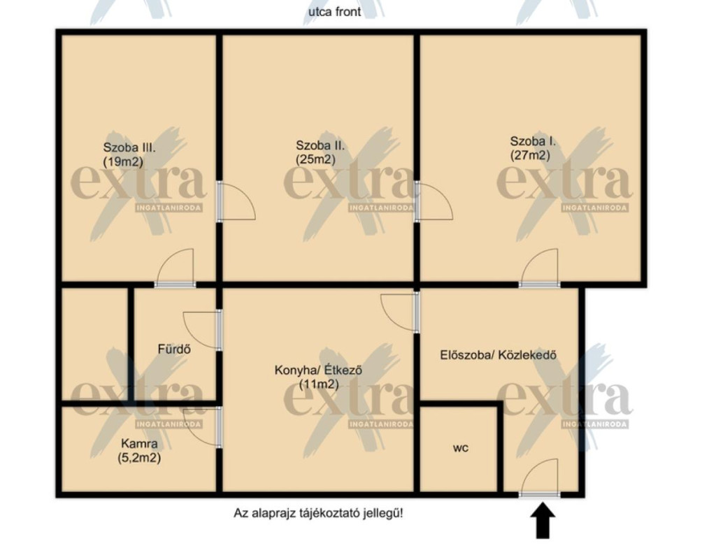 - 3 szoba (27m2, 25m2, 19m2)