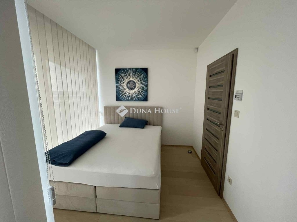 A panorámás kilátás a lakópark belső, parkosított kertjére és a mesterséges tóra nyílik — tökéletes helyszín a reggeli kávéhoz vagy esti kikapcsolódáshoz.