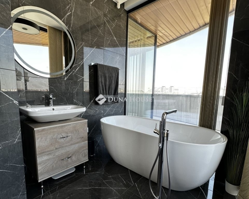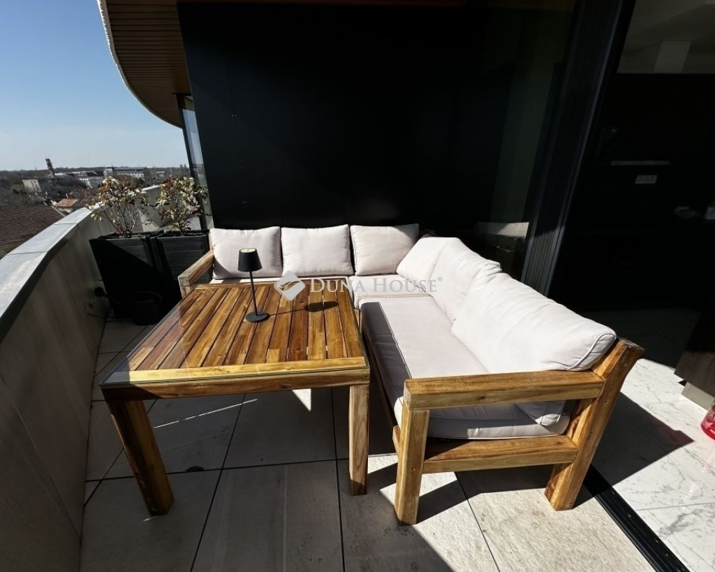 A lakás egyik kiemelkedő értéke a 70 m²-es, körbefutó terasz, amely minden helyiségből elérhető, és kényelmes kültéri életteret biztosít.