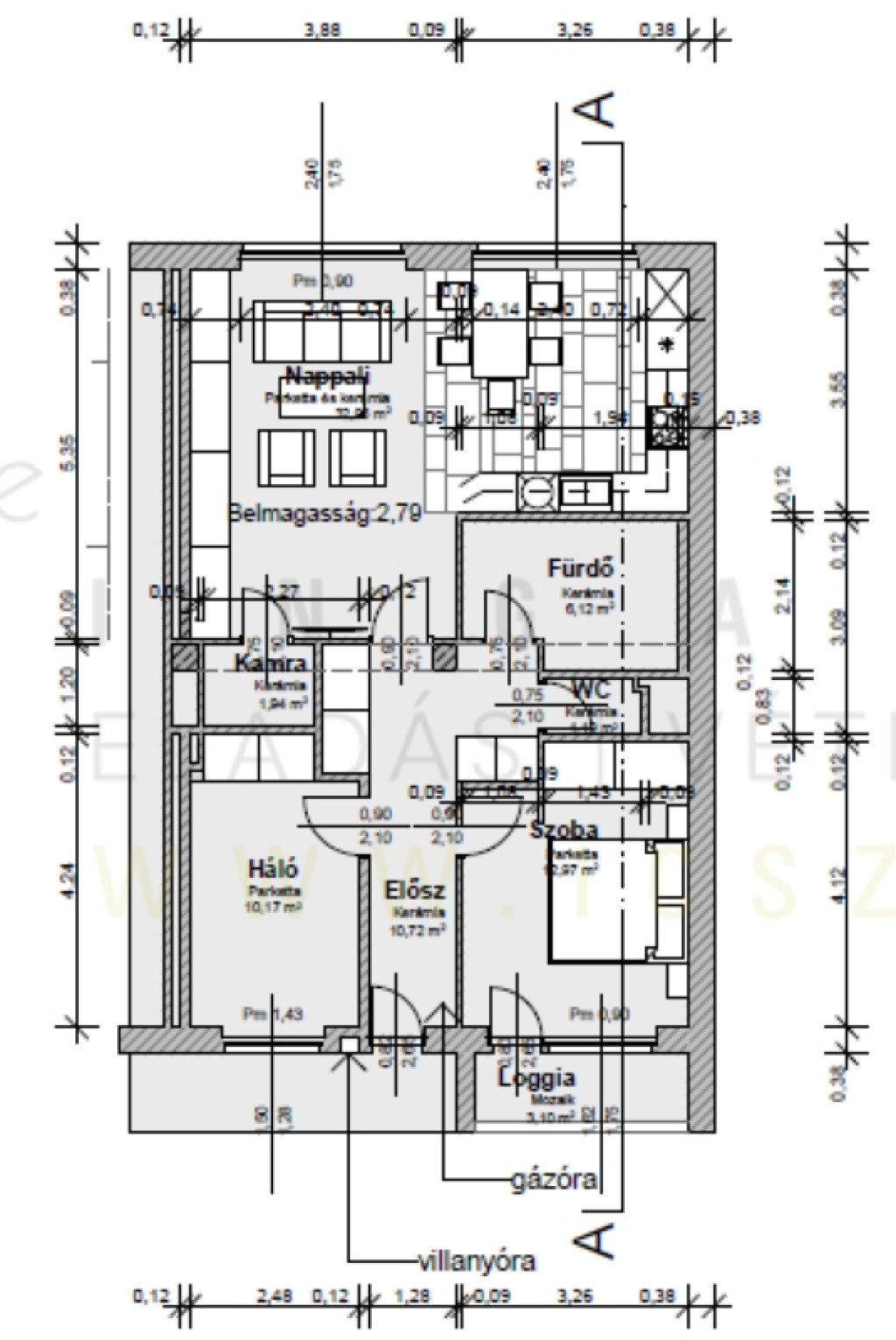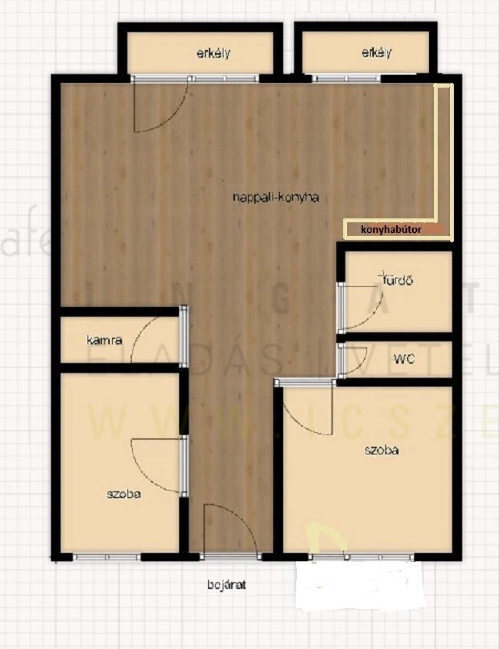 Nagy étkezőkonyha, 3 tágas szoba, kamra, erkély, bontható válaszfalak sok lehetőséget kínálnak a felújításhoz.