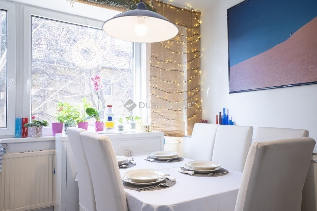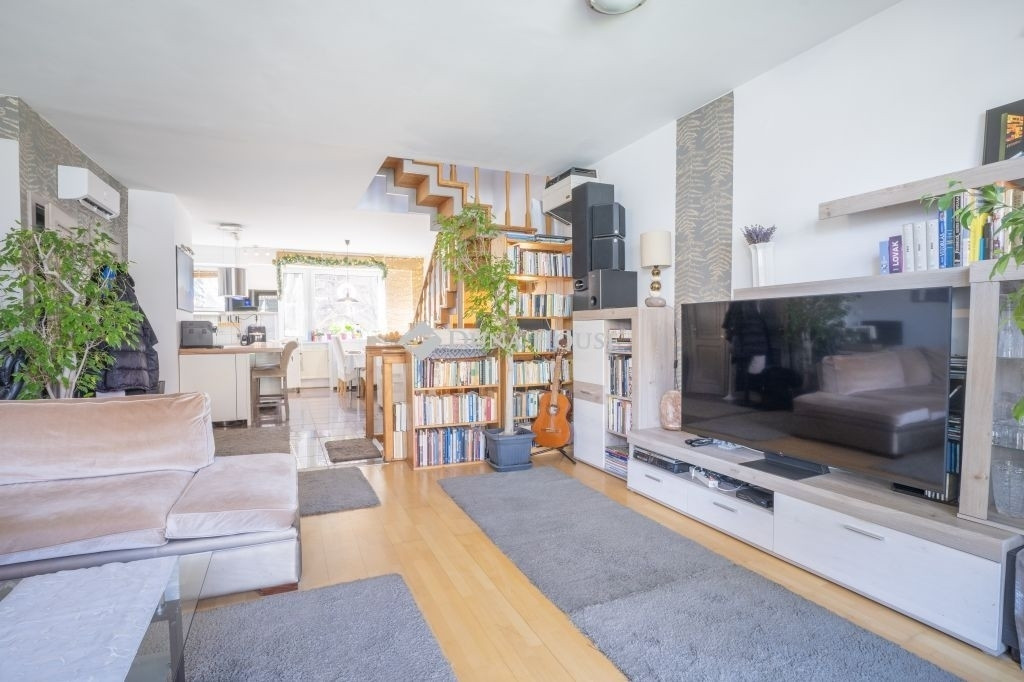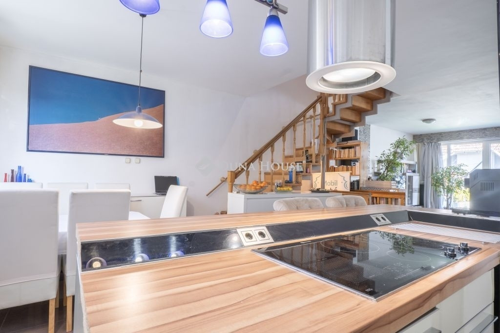 Újszegeden nagy teraszos (42 nm) sorházi lakás eladó!Szeged egyik legkedveltebb városrészében, a belvároshoz közel, mégis parkos, zöldövezeti környezetben vált eladóvá egy 5 lakásos társasház (külön helyrajzi számmal rendelkező) felújított, 105 nm-es, belső kétszintes lakása. Az egymás mellett lévő és külön bejárattal rendelkező lakások az utcafrontra merőlegesen helyezkednek el, egymás mögött, egy közös, beléptető rendszerrel felszerelt kertkapun keresztül közelíthetőek meg, a telek végében pedig a közösen használható kert található, néhány tárolóval.A társasház 1981-2000 között épült, azóta is összetartó, barátságos lakóközösséggel, ahol jó élni.Az ingatlan lakótere az első emeleten kezdődik, ahova, a kerti szintről néhány lépcső vezet fel, egy zárt saját lépcsőházból. A lakás alsó szintje egy légterű, nyitott, ezáltal világos, jól átlátható és szellőztethető. A nappalit és az étkező-konyhát egy közlekedő választja el egymástól, ahova a WC és a kazánház/tároló nyílik, a konyhából pedig egy kis kamrát is leválasztottak. A nappali előtt egy DK- tájolása, nagyméretű nyitott terasz húzódik, mely tavasztól őszig a lakás szerves része, családi-baráti összejövetelek kellemes helyszíne.Az emeleten 3 háló, egy fürdő és egy második szeparált WC kapott helyet. Az egyik háló nem lett leválasztva a közlekedőtől, ezt irodaként/gardróbként használják a jelenlegi lakók, de könnyedén, egy gipszkarton fallal megoldható a 3. háló kialakítása is, ahogy az az eredeti tervrajzon is látható.Az ingatlan fűtéséért gázkazán felel, radiátoros hőleadókkal, de mindkét lakószinten hűtő/fűtő klíma is használható alternatívaként. A jó állapotban lévő nyílászáróknak köszönhetően a rezsi kedvező, a környék infrastuktúrális adottsága kiváló. A közelben pár percen belül elérhető, orvosi rendelő, gyógyszertár, bevásárlási lehetőség, étterem, fodrászat, de a természetbe vágyóknak sem kell messzire menniük, az Erzsébet Liget ill. Holt Maros vízpartja tökéletes a sportolásra, a kikapcsolódásra, a pihenésre.Találja meg itt új otthonát, további információért hívjon bátran, akár hétvégén is!