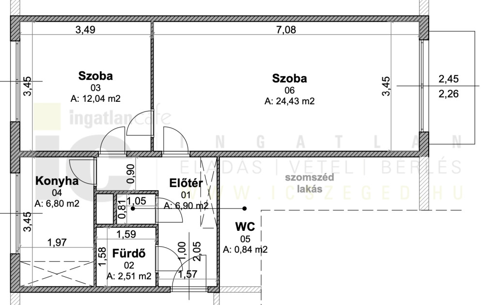 Szeged kedvelt városrészében, a Bimbó utcában eladó egy 55m2-es, két szoba-hallos, erkélyes, 3.emeleti normál állapotú panellakás.