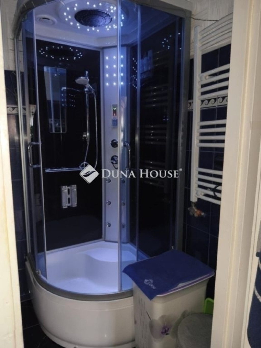 A fürdőszoba modern, zuhanykabinos, a lakás klimatizált, a biztonsági ajtó pedig nyugalmat ad a mindennapokhoz.