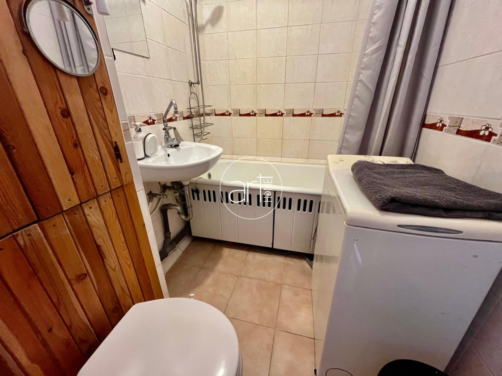 A lakás praktikus elrendezésű: az előszobából nyílik a konyhafülke, a kádas fürdőszoba WC-vel, valamint a nappali és a hálószoba, amelyeket egy ajtó is összeköt. Az előszobában beépített szekrény biztosítja a tárolóhelyet.