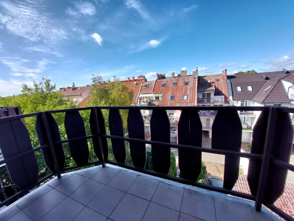 • Világos, erkélyes szoba: az udvarra néző, nyugati tájolású helyiség csendes és napfényes.