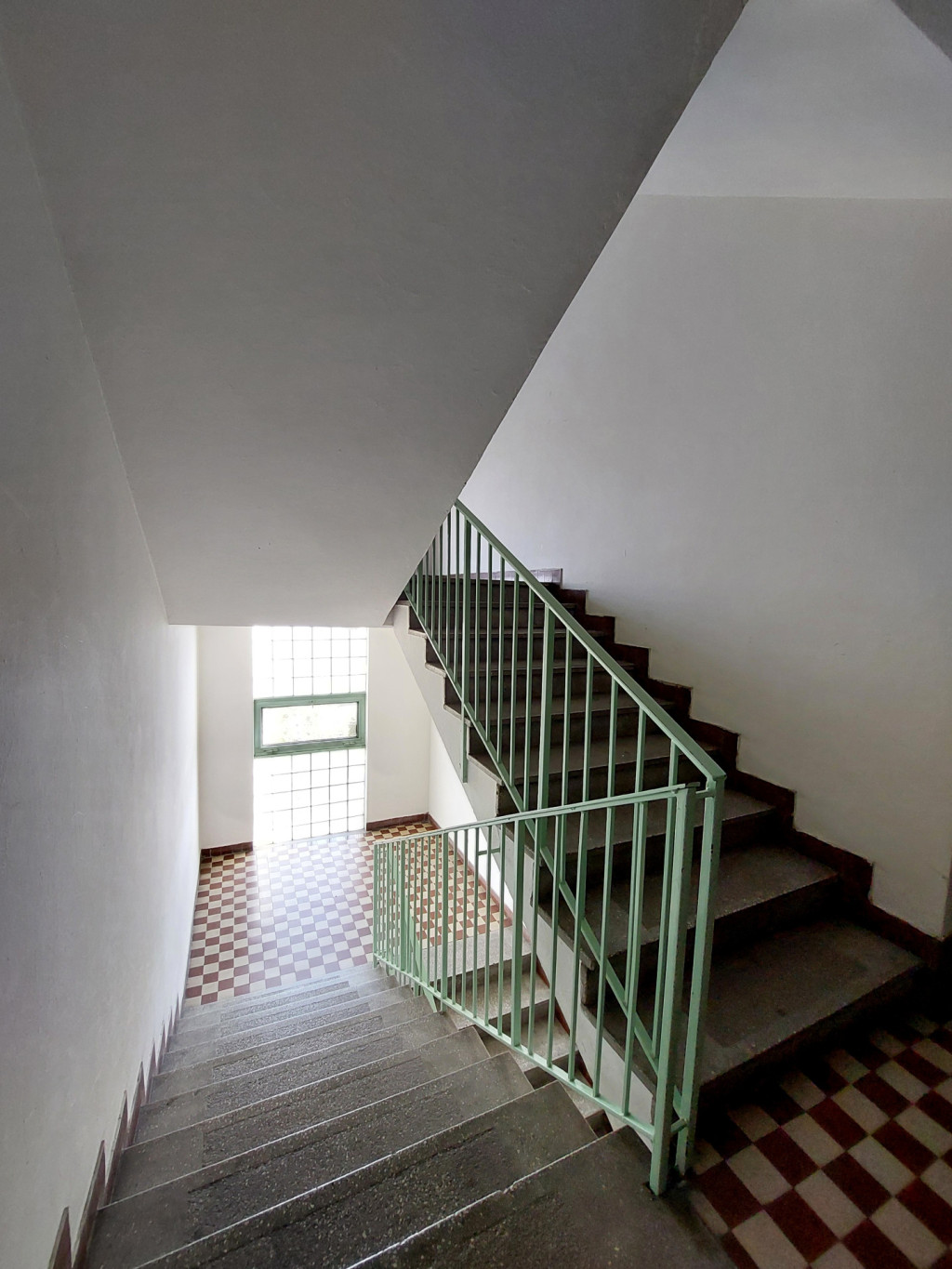 A lakás az udvar felé néz, nyugati tájolású, így csendes és napfényes.