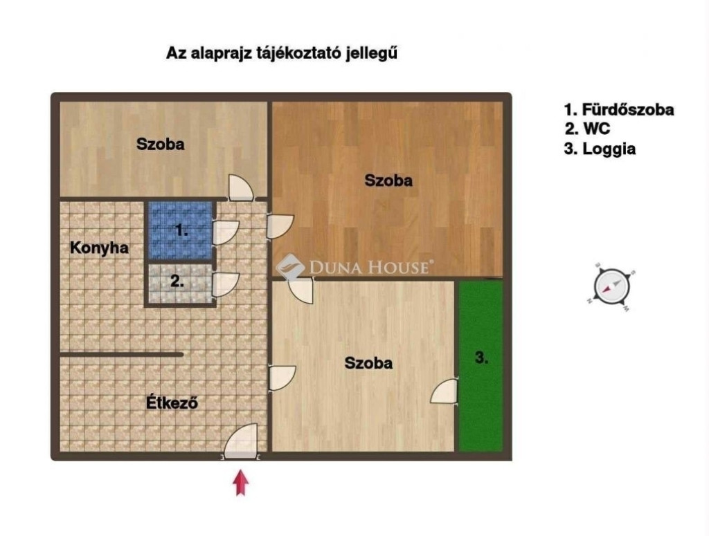 A lakás praktikus elosztású: tágas nappali, külön konyha, modern fürdőszoba, illetve három jól szeparált szoba várja új tulajdonosát.
